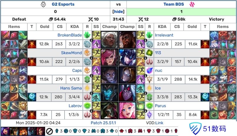 -G2爆冷0:1不敌BDS,野辅两人难堪大用;