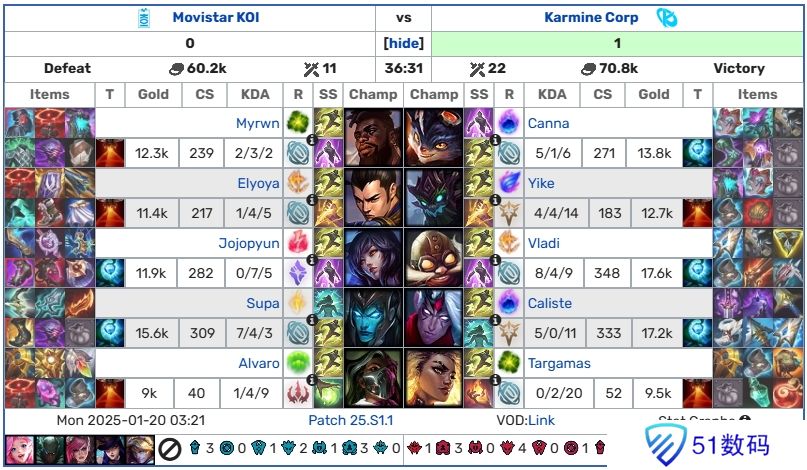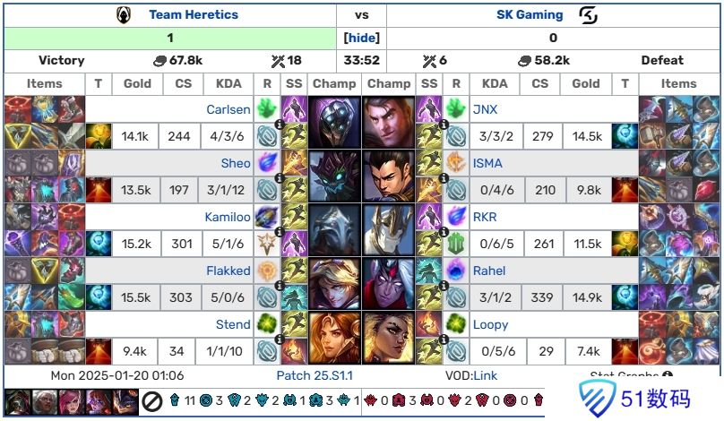 直播吧01月20日讯 2025LEC冬季赛第一周第二个比赛日结束;五场Bo1的具体赛果计分板如下: