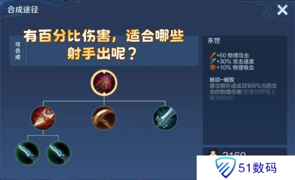 末世可以让普攻附带敌人8%当前生命值的伤害,属于法球流装备之一,通常来说依赖普攻的射手出的比较多。