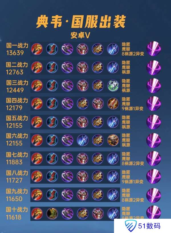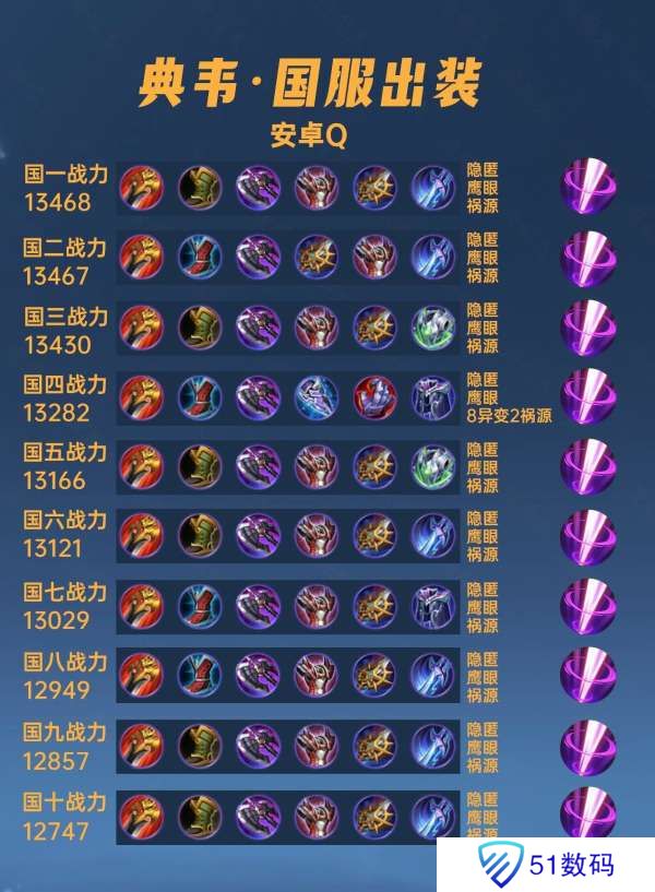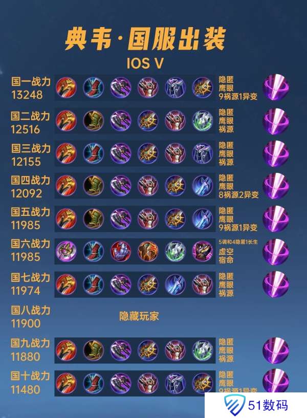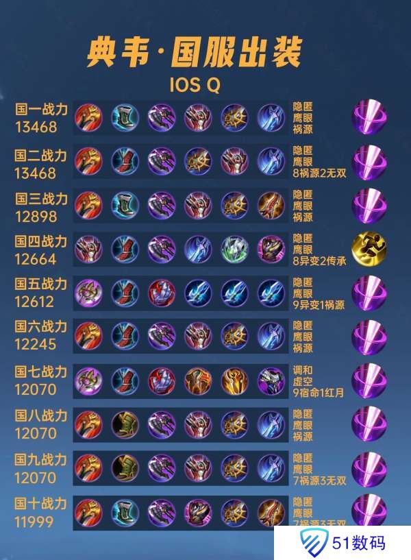 这篇文章我们来看一下40位国服典韦的出装铭文汇总。