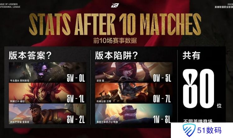 LPL第一赛段前十场比赛数据:霞、兰博零胜率
