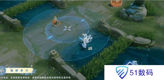 一技能:澜下潜化作神兽犼奔走,破潜时神兽与澜一并迅猛扑出。