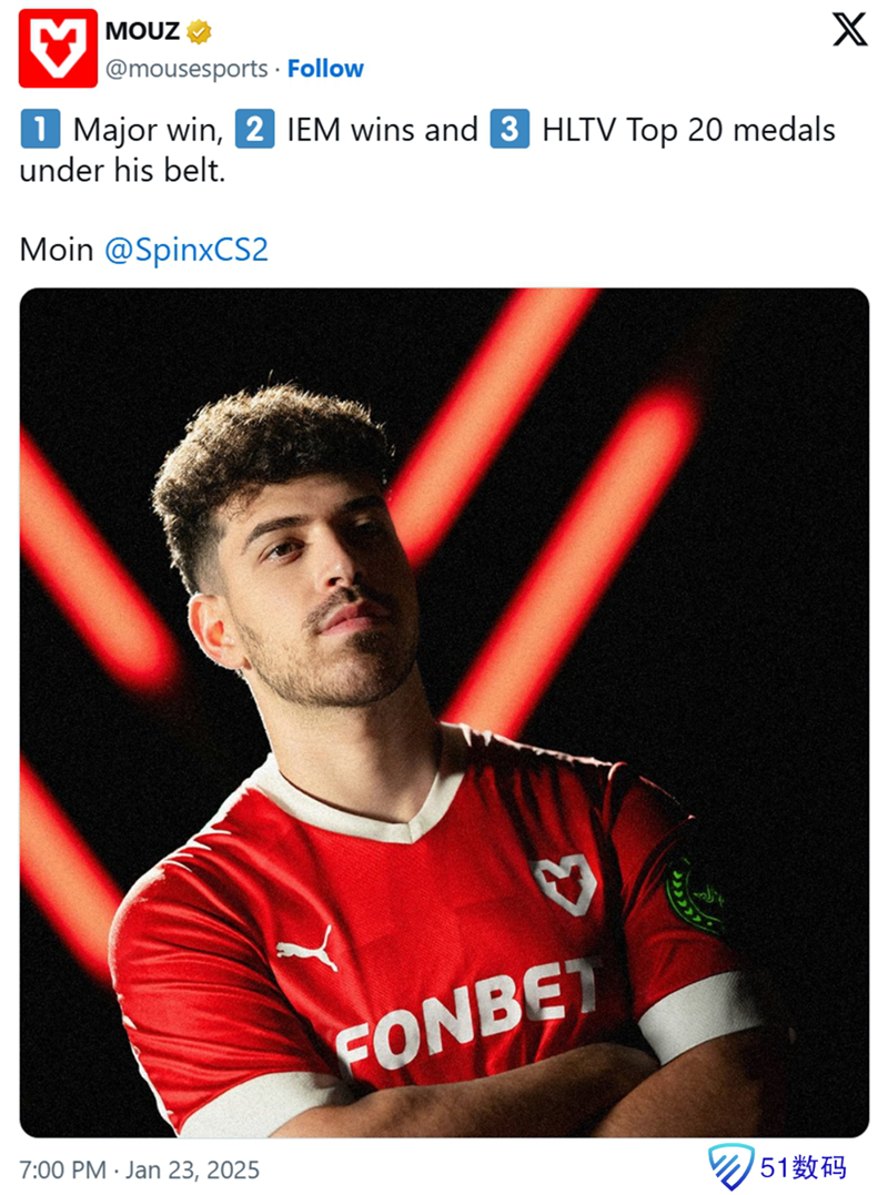 今天晚上,MOUZ正式宣布签下Spinx作为战队第五人。