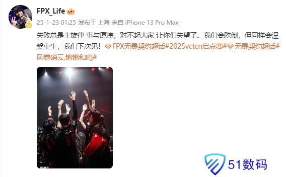 赛后,Life发文:失败总是主旋律,事与愿违,对不起大家,让你们失望了。我们会跌倒,但同样会涅槃重生,我们下次见!
