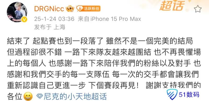 SpiritZ1:启点赛旅程到这里结束啦!这次比赛只是我职业生涯的起点!感谢每一位一路支持我的粉丝,未来的路还很长,我们下一场比赛见!