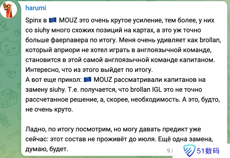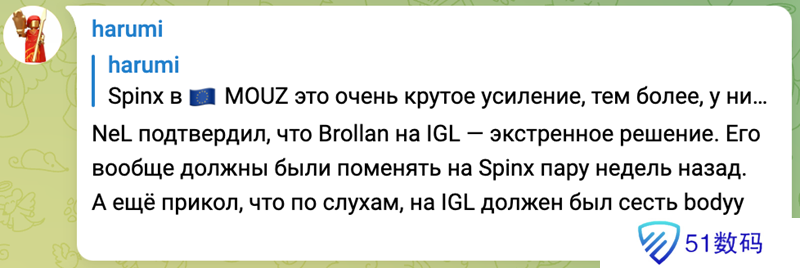 MOUZ宣布下放指挥siuhy并签下Spinx之后,独联体知名爆料人harumi在个人社交媒体账号上分享了自己的看法。认为Brollan担任指挥只是紧急决策,还会有新的指挥人选出现。