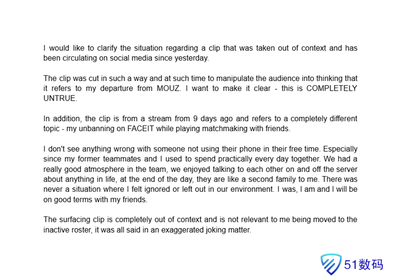 MOUZ战队这件事。我想明确说明,这完全不实。