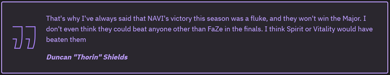 根据Thorin的看法,NAVI队伍比其他阵容差,因此他们在2024年PGL哥本哈根Major的胜利是偶然的: