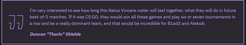“我很想看看这个NAVI阵容能在一起多久,他们未来在BO5比赛中的表现会如何。如果是CS:GO,他们会赢得所有这些比赛,并连续赢得六到七个赛事,成为一支非常占据主导地位的队伍,这对