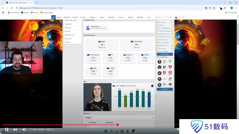 “就赛事末期的表现而言,NAVI打得不算差。但他们仍不像2024年明年初和年中那般处于最佳状态。队伍正在逐渐找回状态,所有核心成员都已就位。然而NAVI及其队员缺乏稳定性:jL的表现依旧平平,w0nderful状态起伏不定。就我个人看来,Aleksib每打一场比赛,都在逐渐向HooXi那样糟糕的表现靠拢。如果他们在2025年还像BLAST 赏金赛中那样,那么NAVI毫无夺冠机会。随着donk、malbsMd、m0NESY以及
