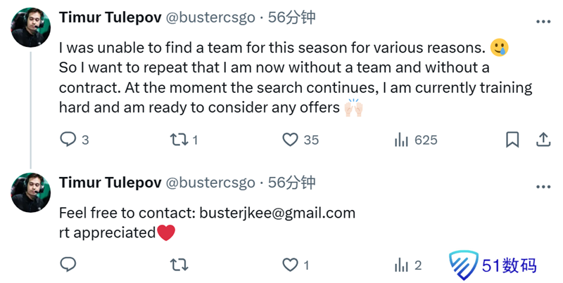 今天独联体职业哥buster在社交平台上发布动态,表示自己希望寻求加盟新战队。