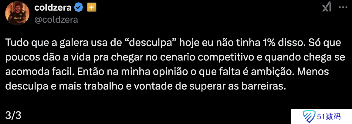 coldzera:缺乏雄心壮志是巴西CS缺乏新鲜血液的原因