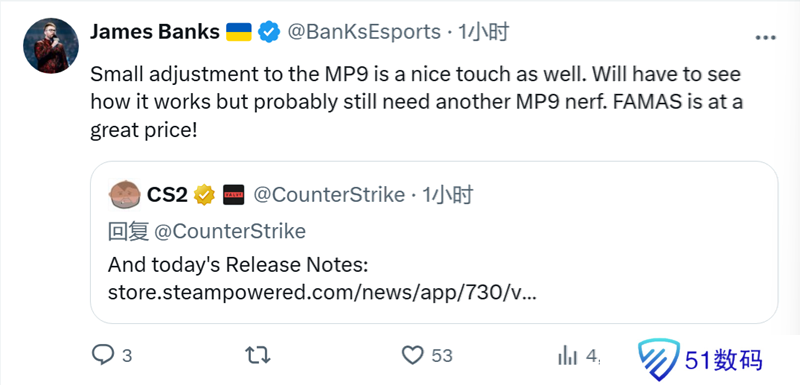 BanKs:对MP9的小幅调整也很不错。得看看效果如何,但可能还是需要再削弱一下MP9。法玛斯的价格很划算!