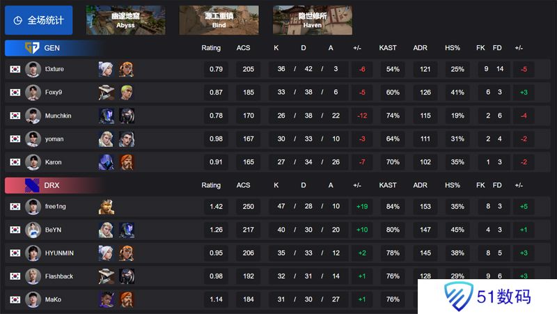 2025 VCT 太平洋启点赛,胜者组半决赛,GEN对阵DRX。图一DRX选择幽邃地窟,BeYN与free1ng联手发挥帮助DRX半场攻下9分,t3xture独木难支,尽管下半场GEN奋起直追,但DRX还是守住优势以13-9先下一城。