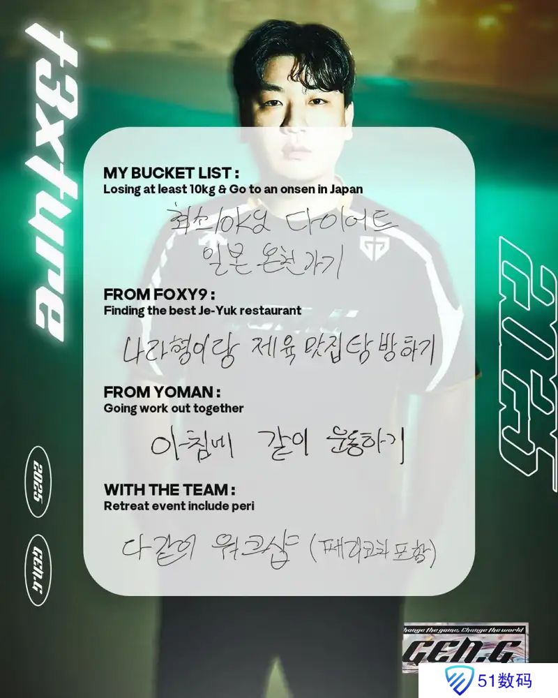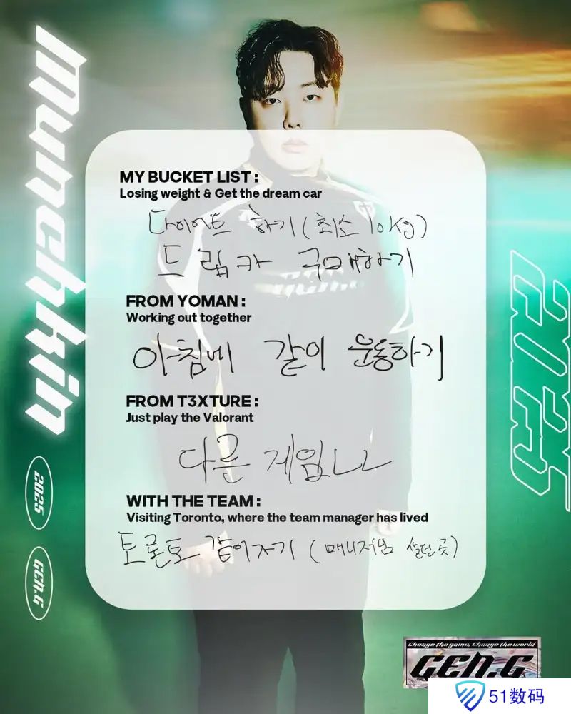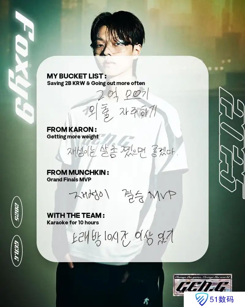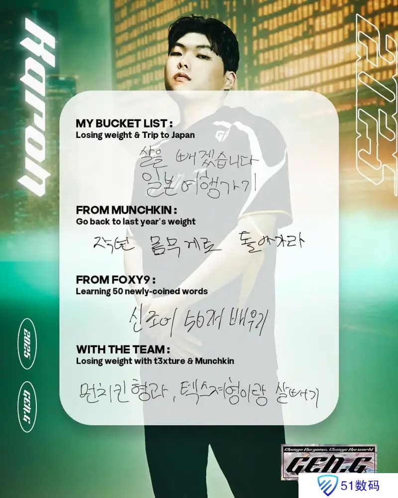 GEN发布五位选手的2025目标,大意如下: