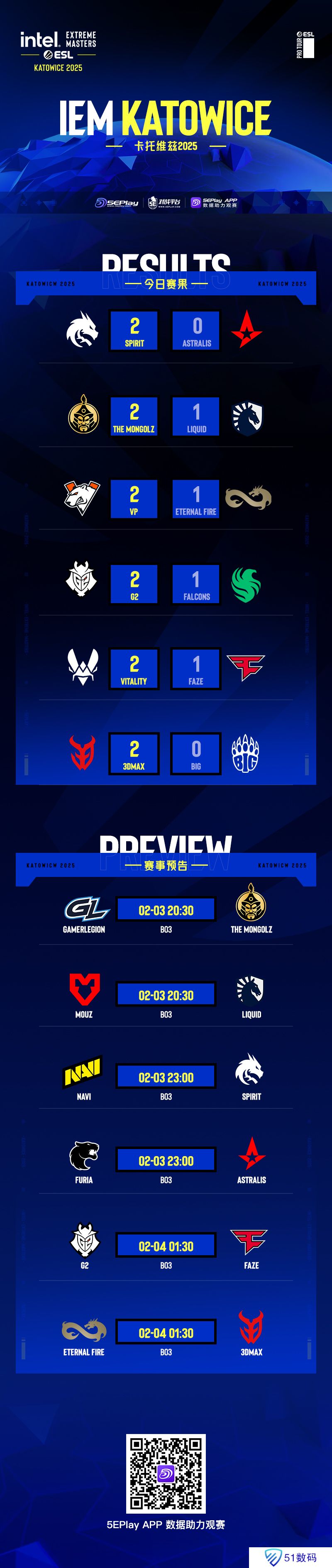 IEM卡托维兹 2025第二日比赛已经结束,在第二日比赛中,