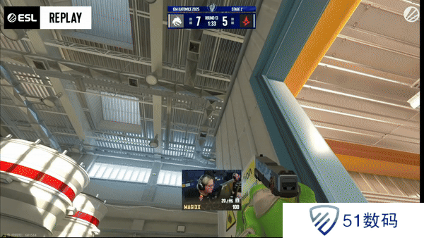 下半场攻守互换。虽然外场donk又被颗秒,但magixx黄房突破三杀融化A区防守,绿龙拿下下半场手枪局。