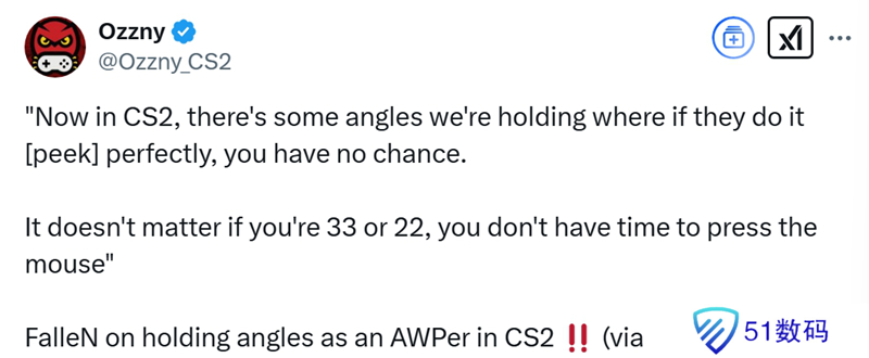 “如今在CS新版本中,当我们架着某些角度时,如果对手做出了顶级peek,那么你没有任何机会。