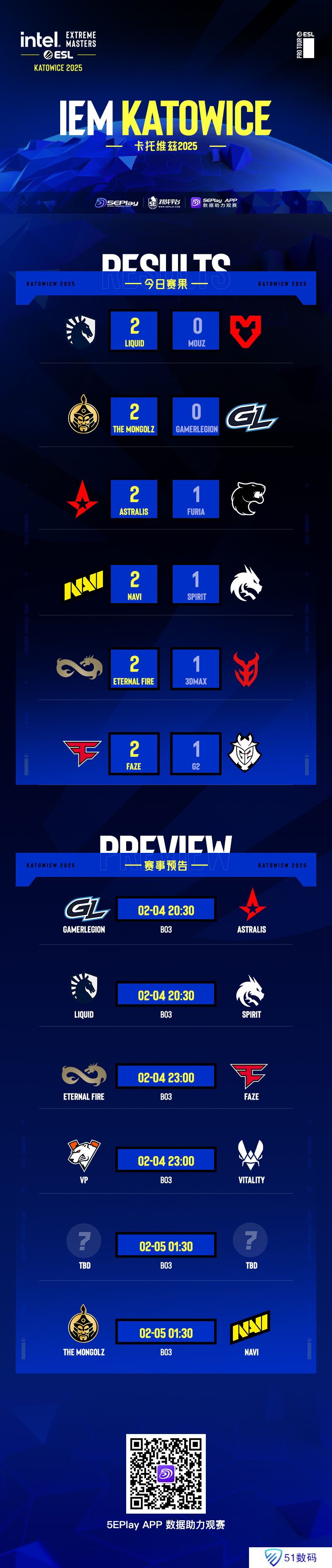 Virtus.pro、蒙古队将和NaVi争夺四强名额!以下为今日赛果、明日预告一览: