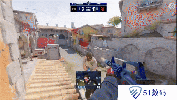 Eternal Fire先做进攻方。手枪局永恒之火抢A大失败转二从A小发难,Ex3rcice绕后打掉一个背身,而A小土匪全部被接完,手枪局3DMAX拿下。