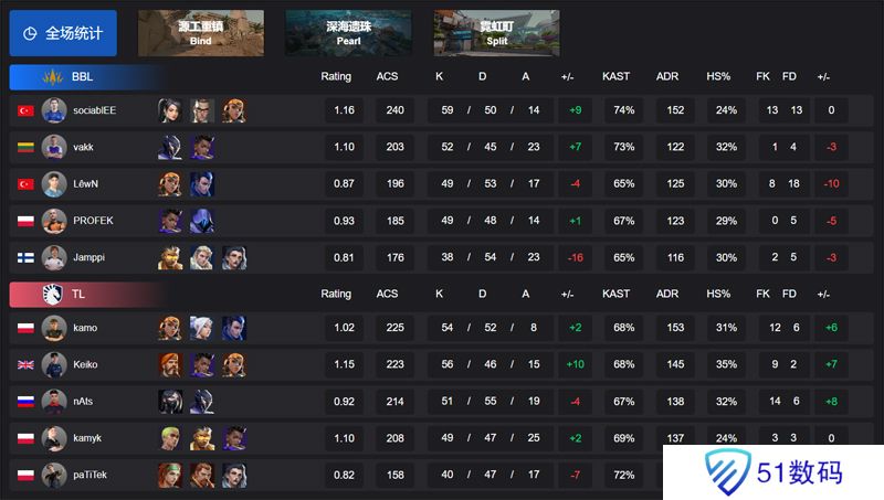 图**BL选择深海明珠,vakk与sociablEE联手爆发帮助队伍半场攻下9分,随后稳扎稳打以13-9扳回一城。