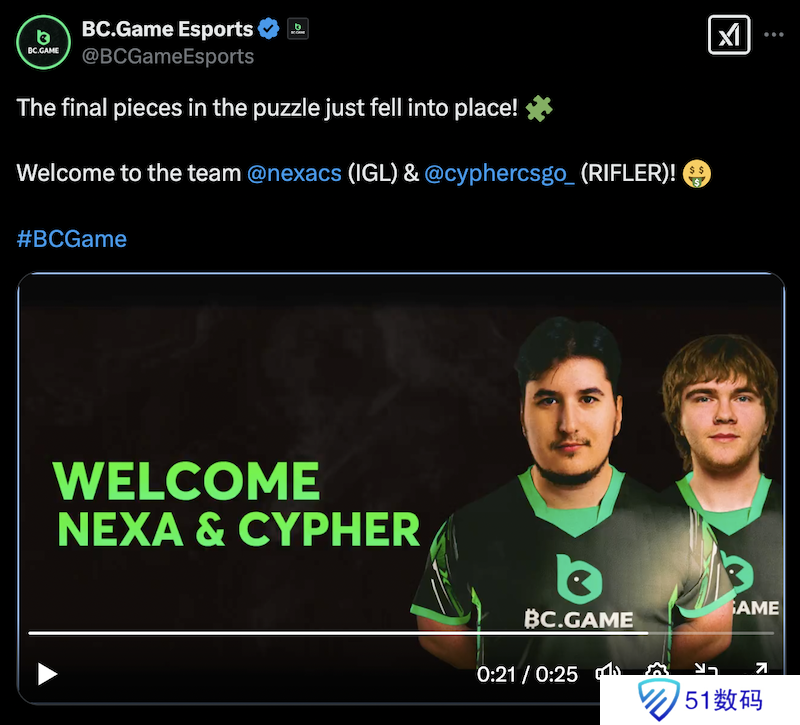 官宣:nexa与CYPHER加入BC.Game,CacaNito、Lekr0被下放