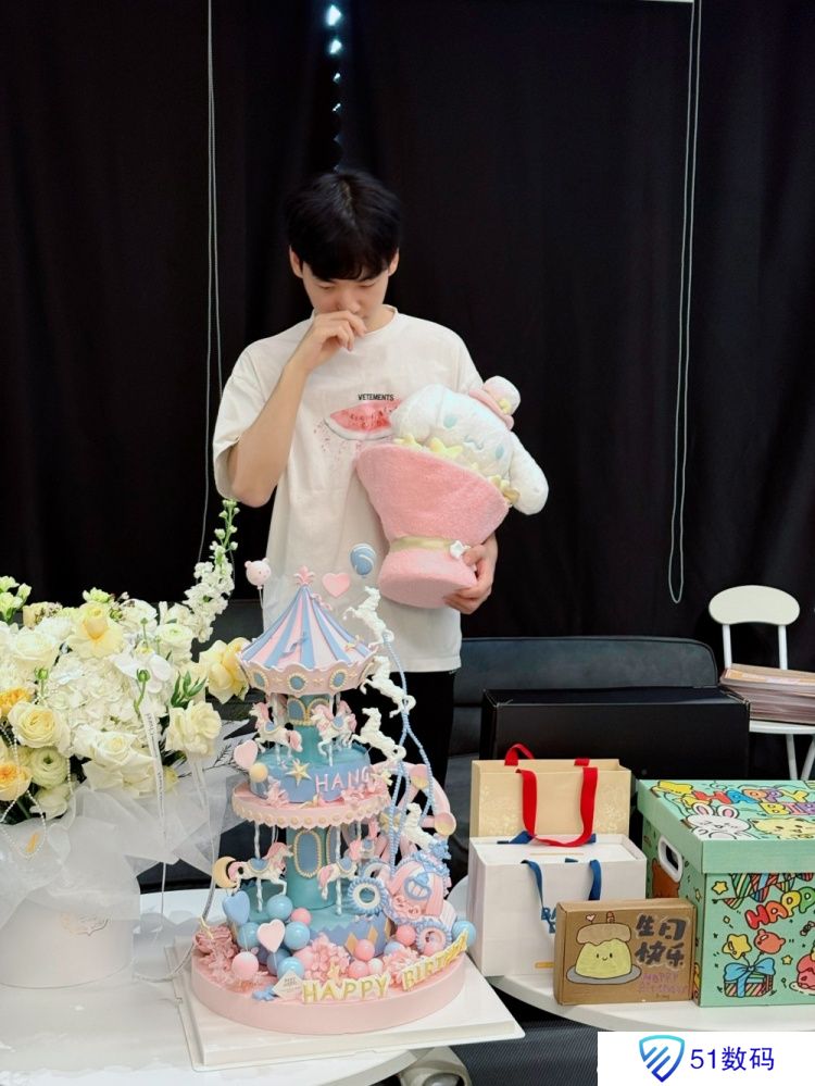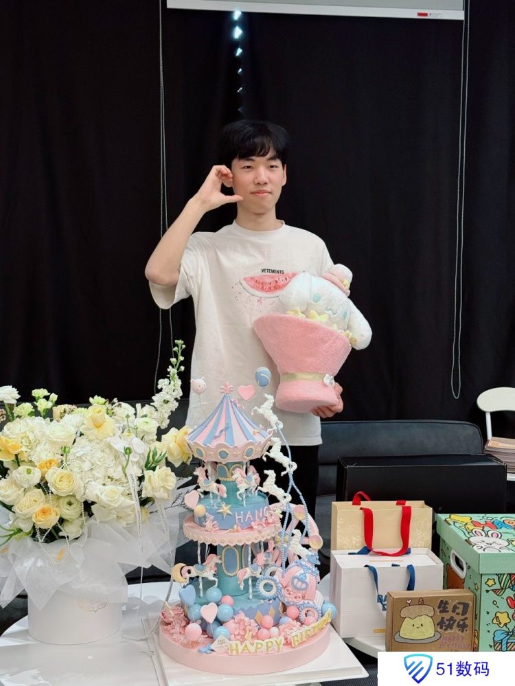 WBG官方晒Hang与礼物蛋糕合影:祝Hang生日快乐