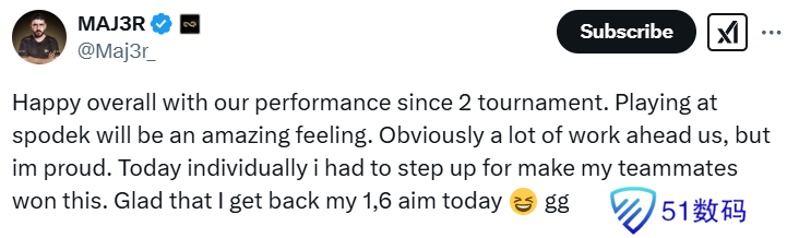 MAJ3R:总体来说,我对我们在过去两场比赛中的表现感到满意。在Spodek竞技场比赛将会是一个令人振奋的体验。显然,我们面前还有很多工作要做,但我感到自豪。我必须在个人表现上有所提升,以帮助我的队友赢得比赛。很高兴我今天恢复了瞄准水平,下次再见。