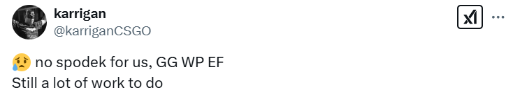 karrigan:我们没有获得进入Spodek的机会,GG WP EF,我们还有很多工作要做。