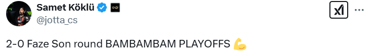 jottAAA:2-0战胜FaZe,淘汰赛我们来了。