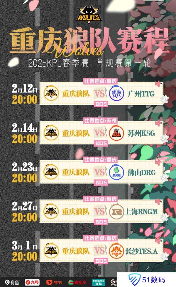【重庆狼队·2025KPL春季赛常规赛第一轮赛程日历】