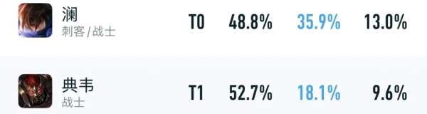 此外,还有一直被调侃为“牢九门”的达摩,他的巅峰赛胜率已经冲到51.2%了,这还是在12.1%出场率的前提下,强度也高了半档,已经能排在对抗路的前三名了。
