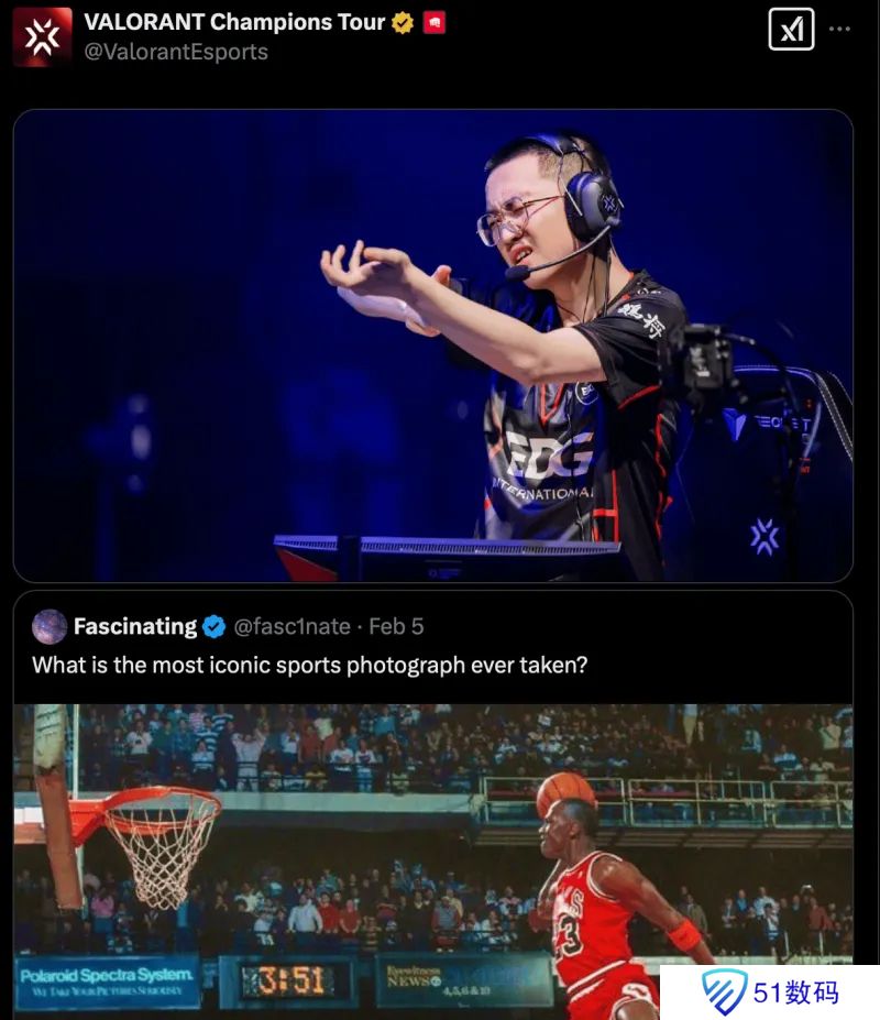VCT官方转发这一帖子并附上了EDG战队ZmjjKK选手的标志性动作。