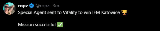 ropz:特工被派往Vitality战队去赢得IEM 卡托维兹