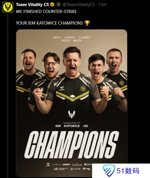Vitality:我们赢得了这场CS,IEM卡托维兹冠军!