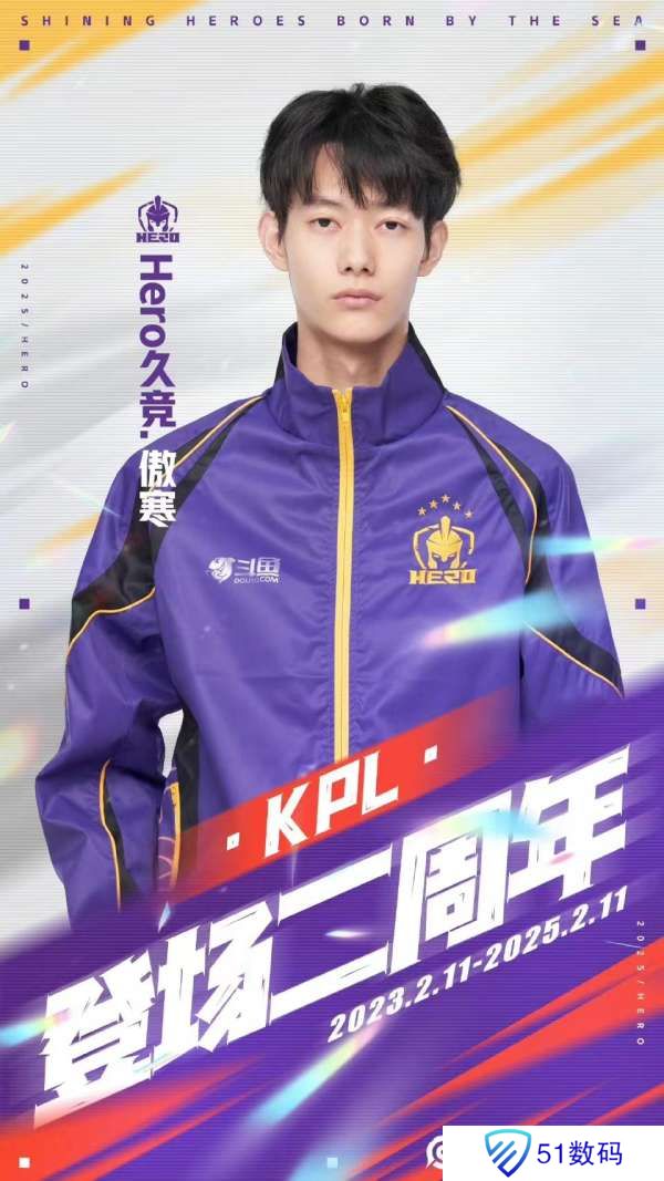 虎扑02月11日讯 今天是Hero久竞_傲寒 KPL登场两周年:每一帧击杀都撰写着”傲寒意志"