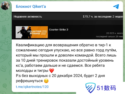 PARIVISION战队选手Qikert在个人社交媒体账号上表达了未能晋级的遗憾。