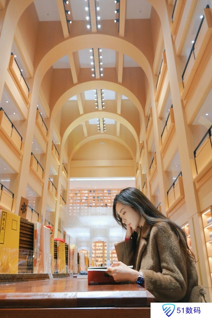棕色大衣内搭粉色毛衣 余霜晒照:偶遇了超美的徐家汇书院