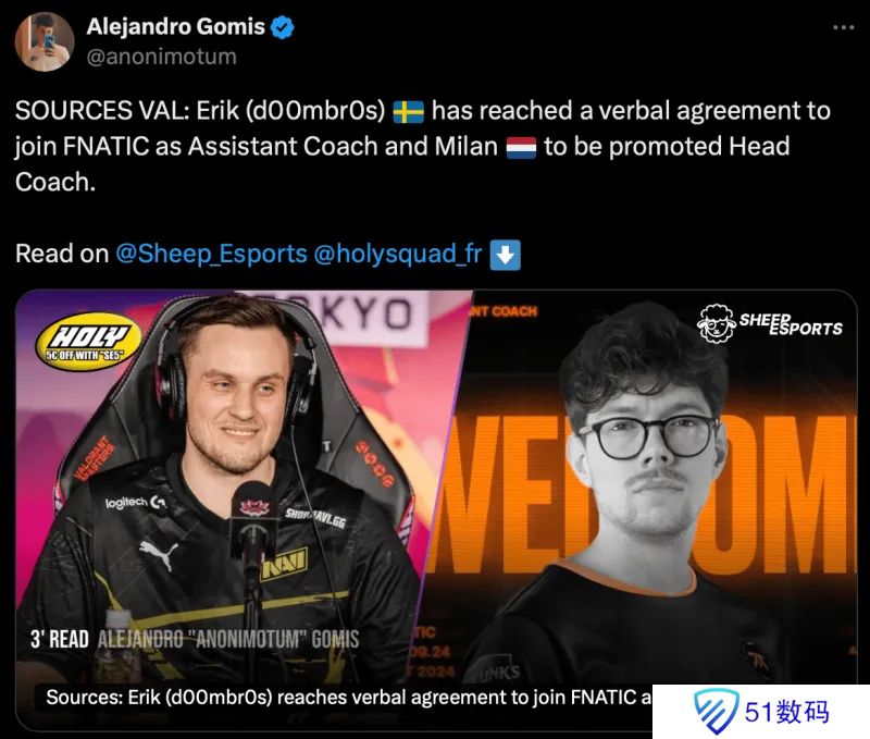 外网爆料:d00mbr0s加入FNC担任助教,前助教Milan晋升为主教练