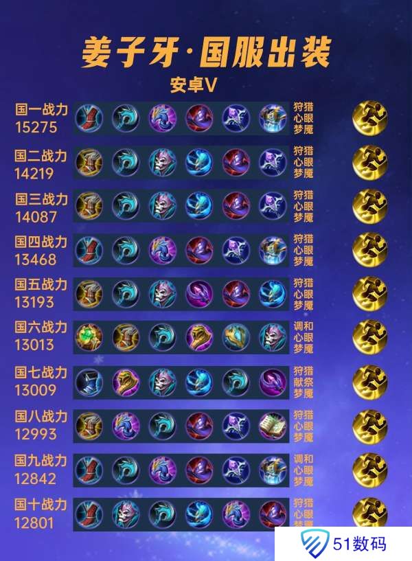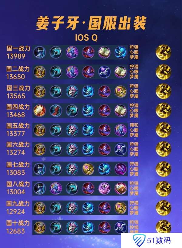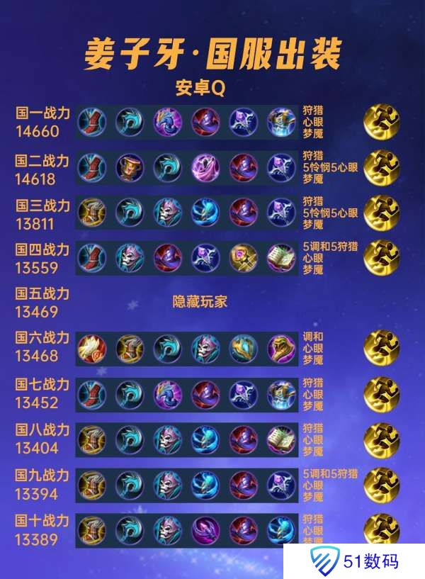 这篇文章让我们来看看40位国服姜子牙的出装铭文汇总。