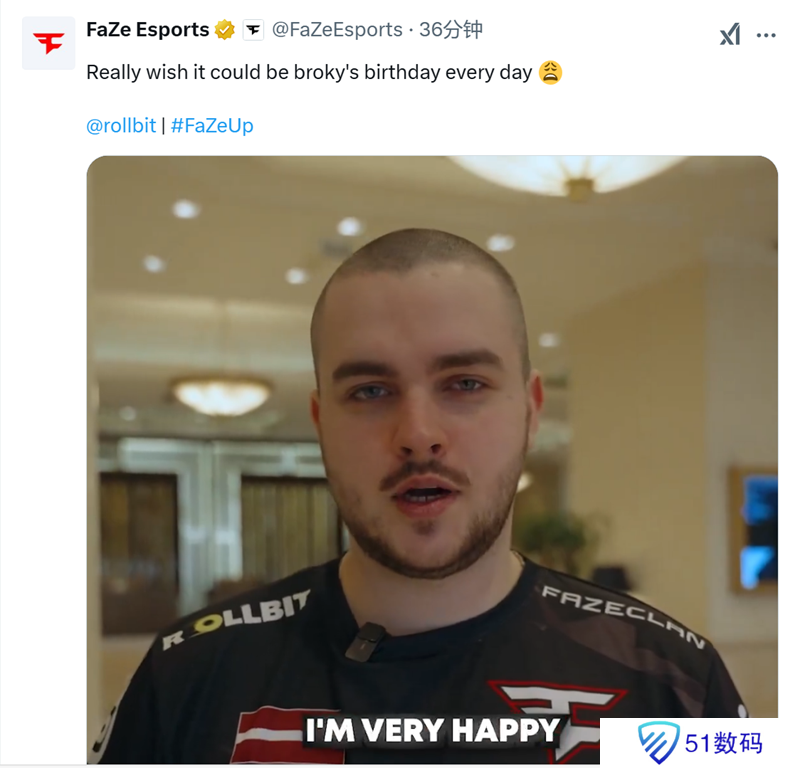 而赛后FaZe战队也打趣道:真希望每天都是broky的生日。