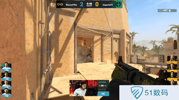 图一为Imperial fe选择的Mirage,先作防守方的EF率先拿下手枪局和对手强起局。第四局,Imperial fe想要来爆弹快提B区被B二楼的MAJ3R吹风机轻松化解,EF再拿一分扩大领先优势。下一局Imperial fe再次快提B区,这一次配合B小土匪直接将B区两名CT歼灭,Imperial fe拿下第一分。但显然这种招式只能用一次,一来到长枪局打默认Imperial fe就不是EF对手,EF依旧在不断拿分。直到第十局,Imperial才堪堪拿下第二分。上半场EF以9-3**分领先。易边再战,Imperial fe拿下手枪局,但很快就被EF翻盘拿了回来,拿下长枪局的EF没再给Imperial fe机会,以13-5赢下图一。