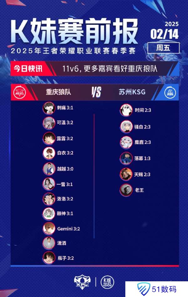 狼队对战KSG :11v6,更多嘉宾看好重庆狼队。
