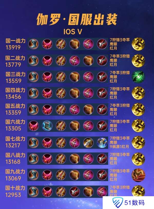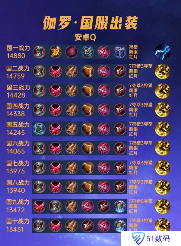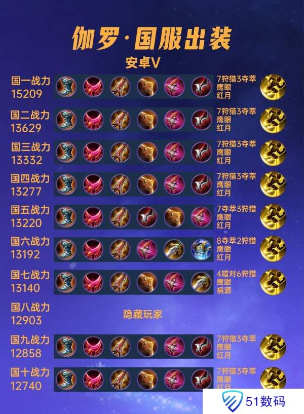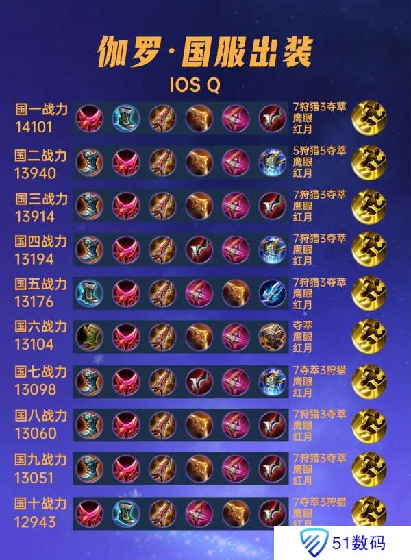 这篇文章我们来看一下40位国服伽罗的出装铭文汇总。