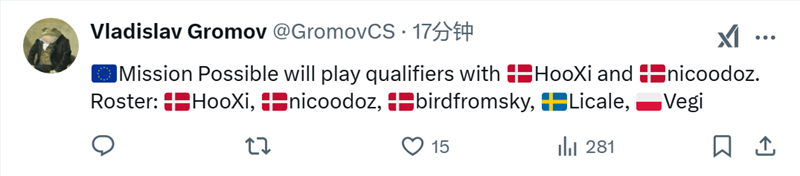 根据他的消息,HooXi将会和nicoodoz组队参加预选赛。该队伍名称为Mission Possible。
