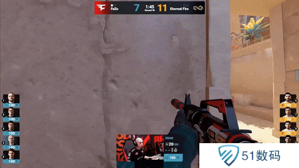 攻防转换。FaZe三b重防一人未换,Eternal Fire拿下手枪局。
