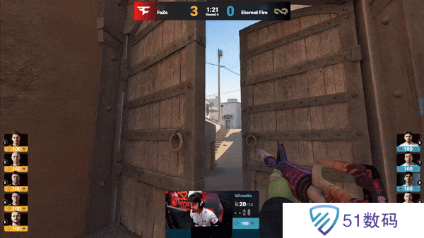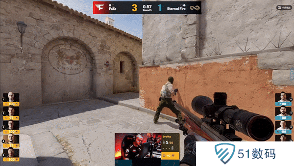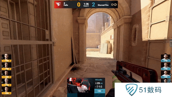 FaZe先做进攻方。手枪局,FaZe的A区爆弹遇到了woxic和jottAAA两人世界位架枪,土匪直接被打退,Eternal Fire拿下手枪局。