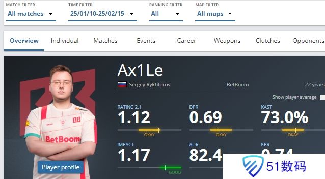 Ax1Le在加入BB战队后状态不错,加入BB战队以后他有着平均1.12的rating。