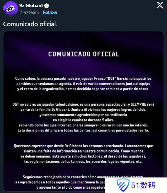 2月12日,9z战队在没有提供任何具体解释的情况下,通过新闻稿宣布了其最具代表性的CS2选手之一dgt的离队。本周一,根据Sheep Esports的消息来源,这支阿根廷战队最终确定了接替这位乌拉圭选手的人选。adamS将接替dgt的位置,而dgt在过去五年半的时间里一直忠诚地为9z效力。这位罗马尼亚步枪手自上月由主播Ibai Llanos领导的KOI战队CS分部解散后,一直处于无战队状态。