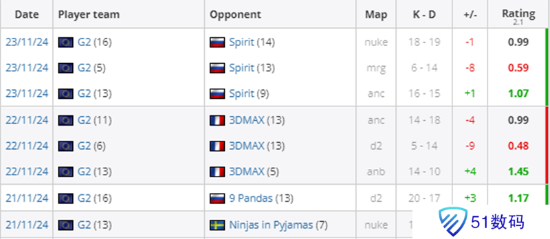 G2战队以3-1的战绩顺利晋级上海Major正赛后,有外媒统计对比了在本次欧洲RMR中m0NESY与s1mple二人的数据表现。